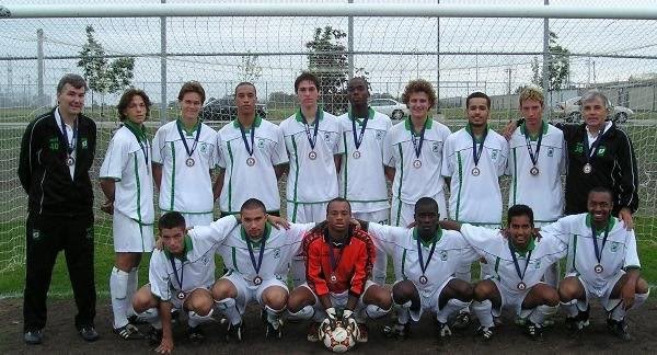 Na poniższym zdjęciu wraz ze swoją drużyną dumnie prezentuje zdobyty medal.