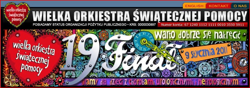 www.wosp.org.pl/pliki/Files/XIXFinal/lista_sztabow_zag.phpJest taki dzień, raz w roku, kiedy w zimową niedzielę na ulicach miast i wsi pojawiają się ludzie z czerwonymi serduszkami przyklejonymi do płaszczy. Co roku mnie to wzrusza. I co roku nie mogę się doczekać na kolejny dzień, kiedy Orkiestra znów połączy nasze serca, aby pomagać tym najmniejszym, bezbronnym istotom :-)